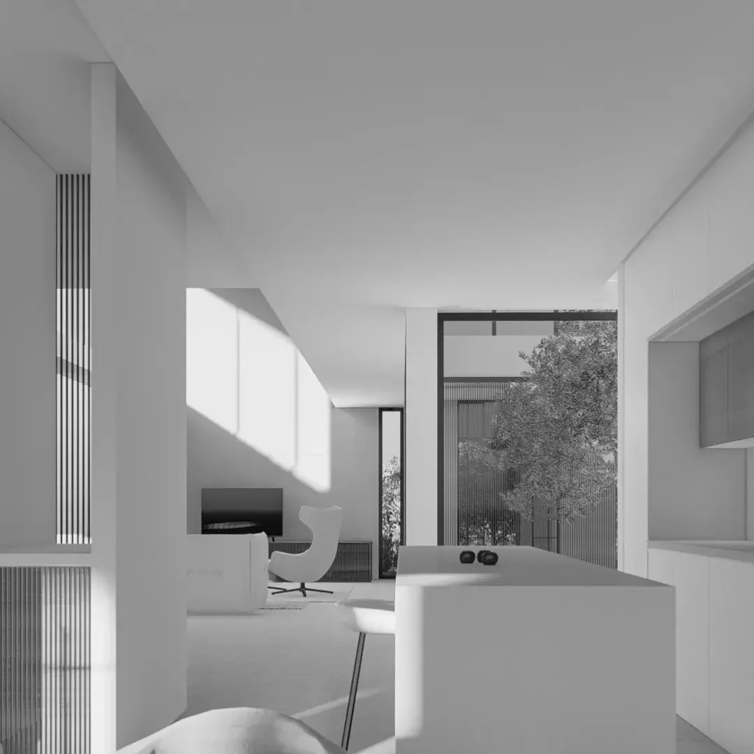 Esta residencia, situada entre medianeras, se desenvuelve en condiciones altamente restrictivas debido a las dimensiones de la parcela y las limitaciones normativas que dictan tanto el ancho como la altura de las diferentes plantas. A pesar de estos desafíos, hemos logrado crear un espacio único y funcional que refleja la esencia de la ubicación.